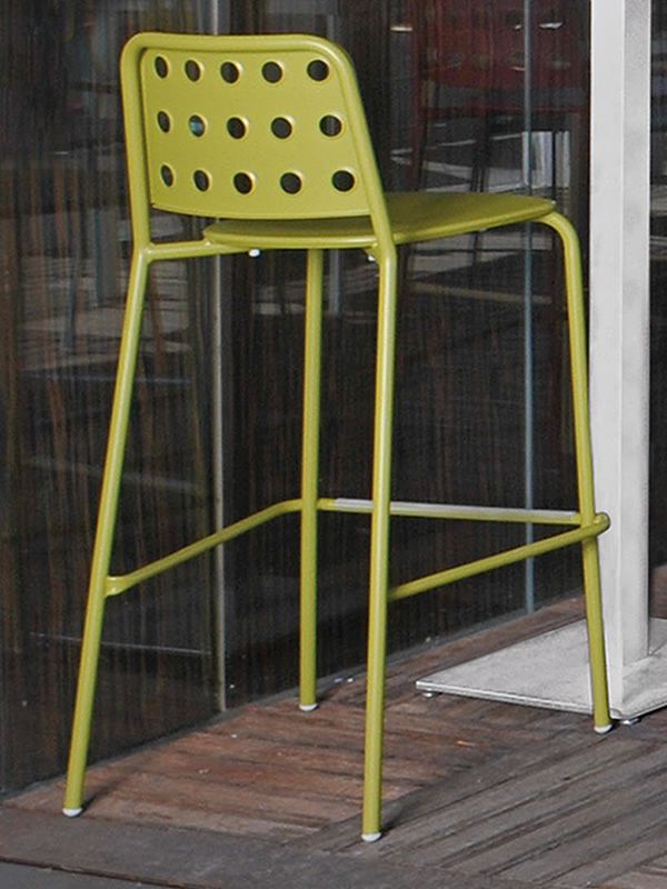 Tabouret de bar Shot. Shot est l'une des nouveautés d'Emu: frais et coloré, en particulier pour le secteur des sièges, des occasions pour gewerblich genutzte en plein air. Les chaises ont une structure en tube d'acier, une assise très confortable en tôle d'acier et les dossiers sont perforés avec un motif embellissant. La chaise prend très peu de place et convient donc également aux espaces restreints. Table de style modéré, elle s'adapte à tous types d'environnement et aux différents modèles des collections Emu.